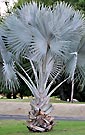 | Probably the most beautiful palm ! The Bismarck Palm has a full crown of large, silvery-blue, circular, fan-shaped leaves and a tall, columnar trunk. In seedlings and young plants, the leaves are tinged with an unreal purple-red color. Bismarckia develops fairly quickly into a large and stunning tree that is excellently suited for the subtropical or tropical garden, for parks, and for breathtaking avenues. It is tolerant of drought and a few degrees of frost and wants a place in full sun, such as it enjoys in the highland savannas of its native home of Madagascar. | |